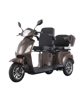 The MS06 electric three-wheeled scooter (moped) has a 1000 W motor and a 20Ah 60V lead acid battery. It can reach speeds of up to 25 km/h and travel up to 50 km on a single charge. Charging time is up to 7 hours.